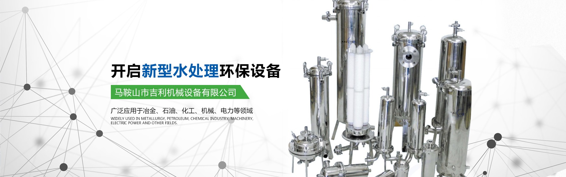 馬鞍山市吉利機械設備有限公司位于江南名城一馬鞍山市,交通十分便利。公司具有獨立法人資格,是集水處理設備的研發、設計、生產、銷售為一體的專業型企業。公司的主要產品有高中速過濾器、纖維球過濾器、新型除油過濾器、無閥過濾器、加藥裝置、管道全自動過濾器、淺層砂過濾器、攪拌機、沙水分離器、管道靜態混合器、化水設備、反滲透等膜處理設備、空氣過濾器等。公司所研發的產品有占地少、處理效果好、投資省、操作管理方便的優點,受到客戶的一致好評。